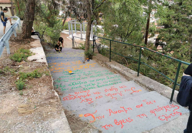 Συγκεκριμένα δημιούργησαν “Τα σκαλιά της Ποίησης”, αφού σε κάθε σκαλί υπάρχουν στίχοι ή λόγια σημαντικών προσωπικοτήτων όπως των Οδυσσέα Ελύτη, Τάσου Λειβαδίτη, Σοφοκλή, Φρίντα Κάλοου, Μπερνάρντ Σω, Μιγκέλ ντε Θερβάντες.