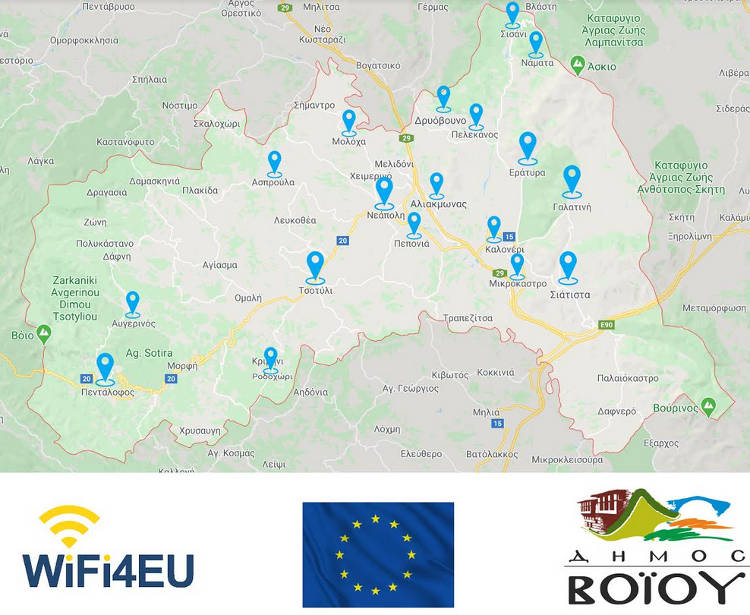 Ο Δήμος Βοΐου ξεκινά την υλοποίηση του προγράμματος WiFi4EU τη Δευτέρα 20.07.2020. Μέσω του WiFi4EU, η Ευρωπαϊκή Επιτροπή σε συνεργασία με το Δήμο μας, επιθυμεί να εξασφαλίσει δωρεάν σύνδεση Wi-Fi (δωρεάν ασύρματο ίντερνετ) για τους πολίτες και τους επισκέπτες σε δημόσιους χώρους, όπως πάρκα, πλατείες, δημόσια κτίρια, βιβλιοθήκες και μουσεία.