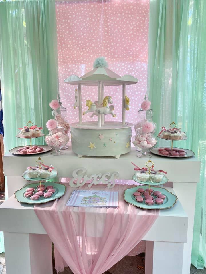 Ρομαντική βάπτιση με θέμα το Carousel από το κατάστημα Δημιουργίες Like a Dream στην Κοζάνη.