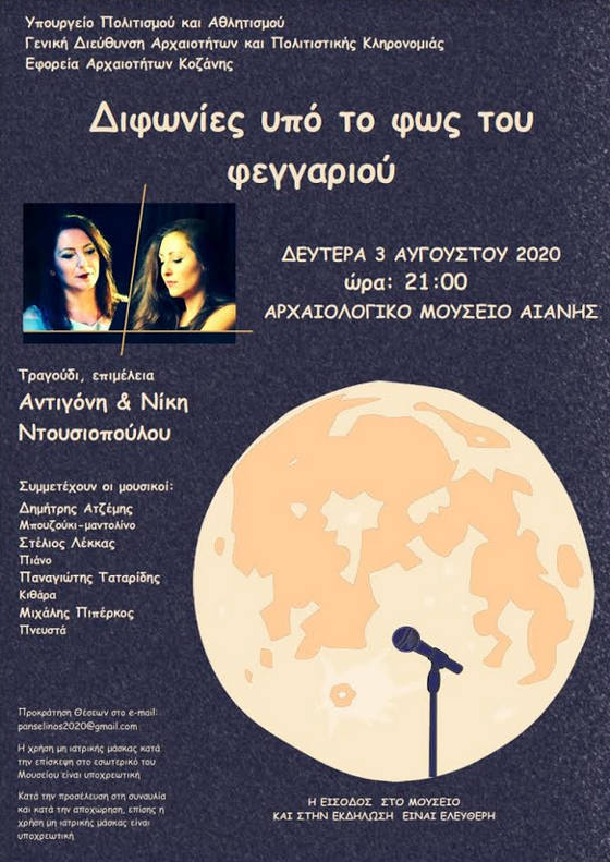 “Διφωνίες υπό το φως του φεγγαριού”, στον κήπο του Αρχαιολογικού Μουσείου Αιανής, τη Δευτέρα 3 Αυγούστου 2020, στις 21:00 η ώρα.
