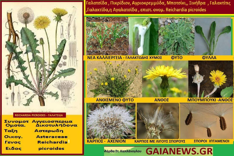 Το είδος, που παρουσιάζεται, σήμερα, είναι το Reichardia picroides, που είναι γνωστό ως Γαλατσίδα, στην Κοζάνη και στα περισσότερα μέρη της Ελλάδος, αλλά και ως αγαλατσίδα , «γαλακτίτις» των βυζαντινών, η «Γαλακτίδα» του Mεσαίωνα, η γαλατσίδα ή αγαλατσίδα στη σημερινή Κρήτη.