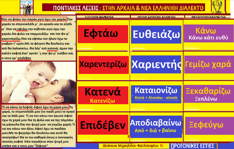 Εξαιρετικό να βλέπουμε μια συστηματική παρουσίαση ποντιακών λέξεων από την κ. Μιχαηλίδου Καπλάνογλου. Η σύνδεση με άλλες διαλέκτους αλλά και με αρχαιότερες μορφές της γλώσσας μας οξύνει το ενδιαφέρον μας για τα γλωσσικά.