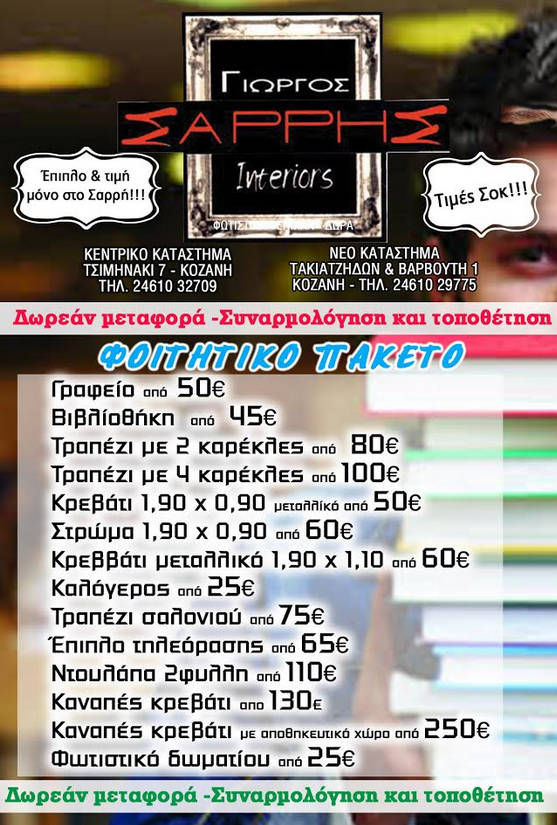 Μεγάλες προσφορές σε φοιτητικά πακέτα από το κατάστημα Σαρρής Interiors στην Κοζάνη