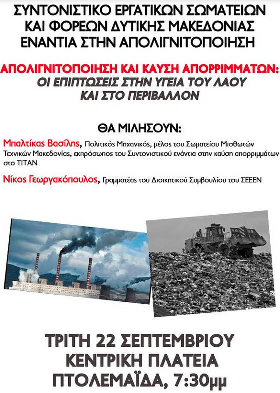 Εκδήλωση Σωματείων και Φορέων στην Πτολεμαΐδα ενάντια στην καύση απορριμμάτων