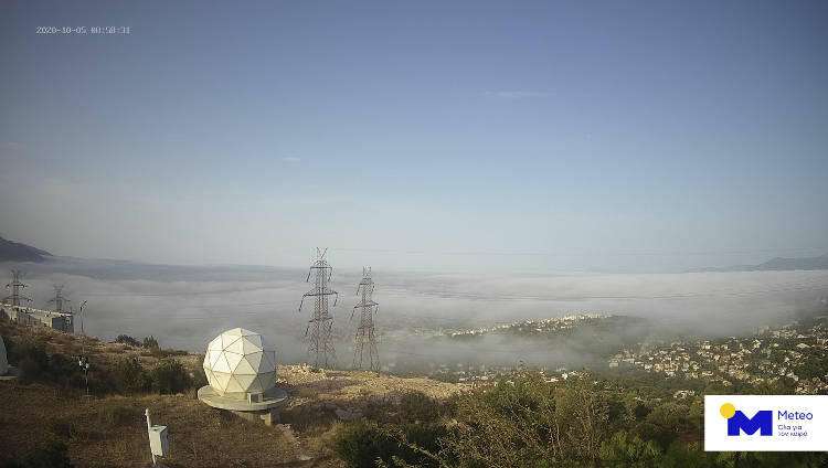 Χαρακτηριστικές είναι η εικόνες της πόλης των Αθηνών στις 9 το πρωί της Δευτέρας από τις μετεωρολογικές κάμερες που βρίσκεται στις εγκαταστάσεις του Εθνικού Αστεροσκοπείου Αθηνών, στην Πεντέλη.