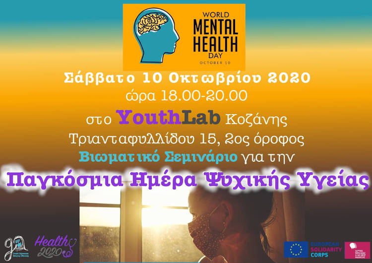 Αυτό το Σάββατο 10 Οκτωβρίου και ώρα 18.00-20.00, η ομάδα νέων “«GO Alive» NGO by Greek Odysseuses” θα γιορτάσει την Παγκόσμια Ημέρα Ψυχικής Υγείας με ένα Βιωματικό Σεμινάριο στο Κέντρο Νέων YouthLab Κοζάνης στην οδό Τριανταφυλλίδου 15, 2ος όροφος.