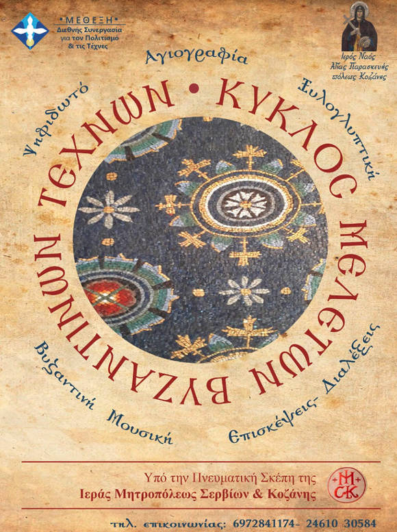Ο Κύκλος Μελετών των Βυζαντινών Τεχνών, υπό την πνευματική σκέπη της Ιεράς Μητροπόλεως Σερβίων και Κοζάνης, συνεχίζει και φέτος με τη σύμπραξη του Ιερού Ναού της Αγίας Παρασκευής και της Διεθνούς Συνεργασίας για τον Πολιτισμό και τις Τέχνες «Μέθεξη».