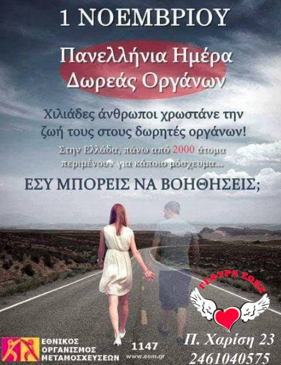 Ενημέρωση… έκδοση κάρτας Δωρητή Οργάνων και … ο θάνατος μπορεί να γίνει Ζωή.
