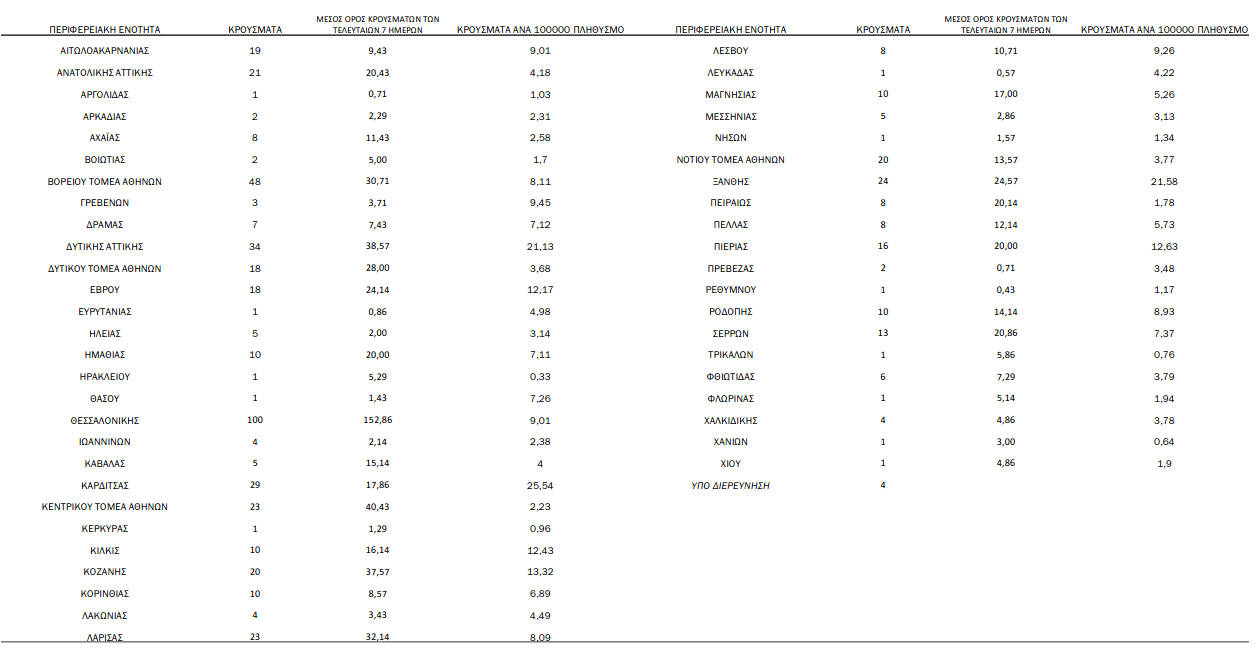 Η κατανομή των κρουσμάτων της Κυριακής 20 Δεκεμβρίου: