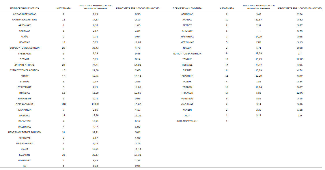 Η κατανομή των κρουσμάτων της Δευτέρας 21 Δεκεμβρίου: