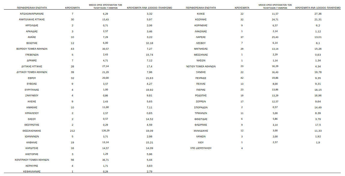 Η κατανομή των κρουσμάτων της Τετάρτης 23 Δεκεμβρίου: