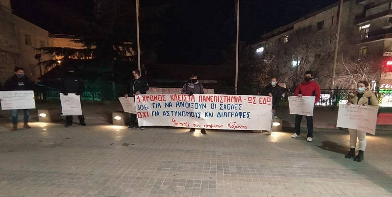 Σε κινητοποίηση στην κεντρική πλατεία της Κοζάνης προχώρησαν, σήμερα Πέμπτη 28/1, φοιτητές των Τμημάτων του Πολυτεχνείου και του πρώην ΤΕΙ Κοζάνης. Οι φοιτητές αντιδρούν στο νέο αντιεκπαιδευτικό νομοσχέδιο της κυβέρνησης που έρχεται μαζί με μέτρα καταστολής στις σχολές, με την δημιουργία της Πανεπιστημιακής Αστυνομίας κτλ.