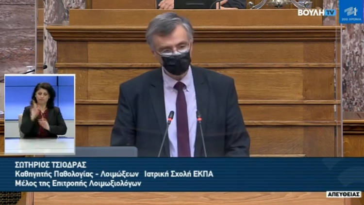 Σε αυστηρή προειδοποίηση τήρησης των μέτρων προστασίας έναντι του κορωνοϊού και επαγρύπνηση από την Πολιτεία και τους πολίτες, προχώρησε από τη Βουλή ο Σωτήρης Τσιόδρας.