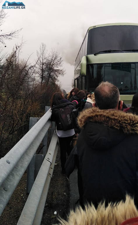 Στο λεωφορείο επέβαινε και μία Κοζανίτισσα η οποία περιγράφει το σοκ που υπέστη και την μεγάλη ταλαιπωρία κατά την αναμονή των επιβατών μέσα στο κρύο και τη βροχή για να επιβιβαστούν τελικά 2 ώρες αργότερα σε άλλο λεωφορείο.