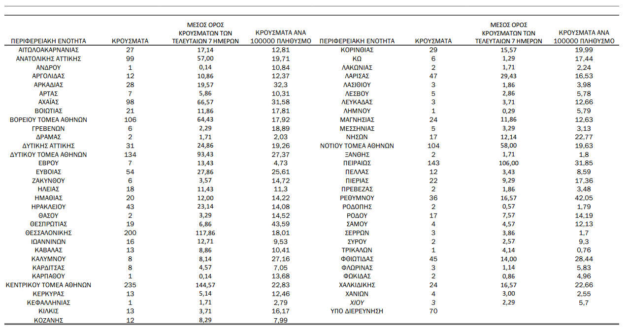 Δείτε εδώ αναλυτικά τα στοιχεία των ημερήσιων κρουσμάτων της Τετάρτης 24/2