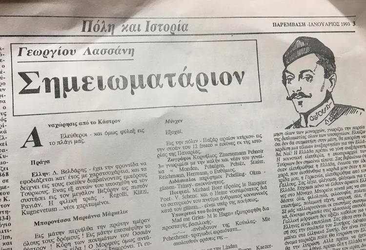 Διάβασα στο ΒΗΜΑ της Κυριακής 7 Μαρτίου πως η Βιβλιοθήκη της Βουλής που διευθύνει η κ. Ελλη Δρούλια προγραμματίζει μεταξύ των άλλων δράσεων της στο πλαίσιο του 1821-2021 την έκδοση τις «Ταξιδιωτικές σημειώσεις – Η φυλακή» του Γ Λασσάνη.