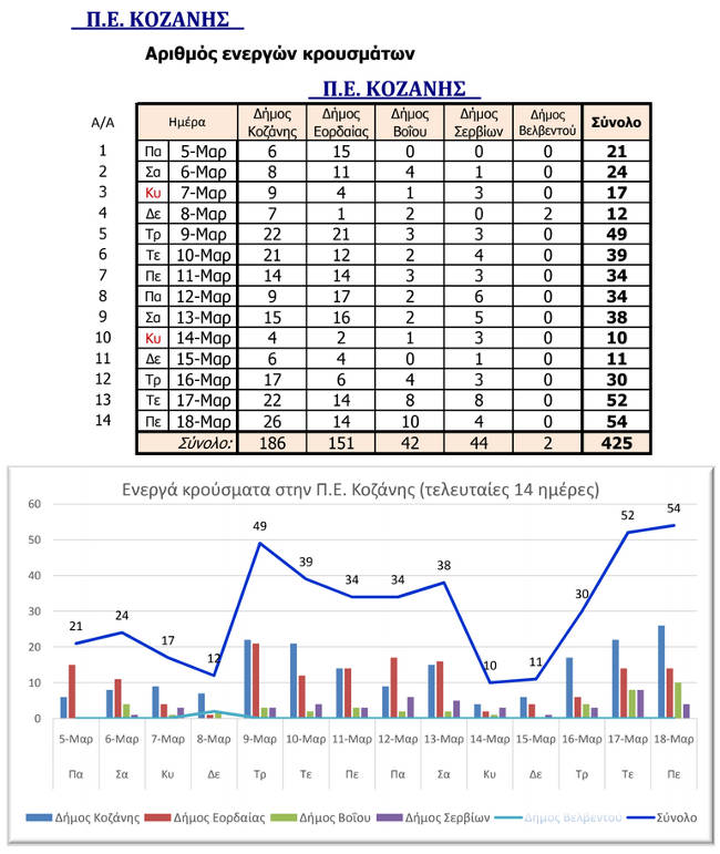 Η ημερήσια αναφορά των κρουσμάτων στην Π.Ε. Κοζάνης – Από ποιους Δήμους προέρχονται τα χθεσινά 54 κρούσματα κορονοϊού