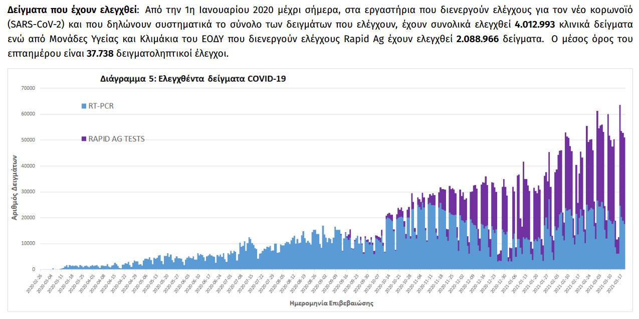 Οι νέοι θάνατοι ασθενών με COVID-19 είναι60, ενώ από την έναρξη της επιδημίας έχουν καταγραφεί συνολικά 7.421 θάνατοι. Το 95.8% είχε υποκείμενο νόσημα ή/και ηλικία 70 ετών και άνω.
