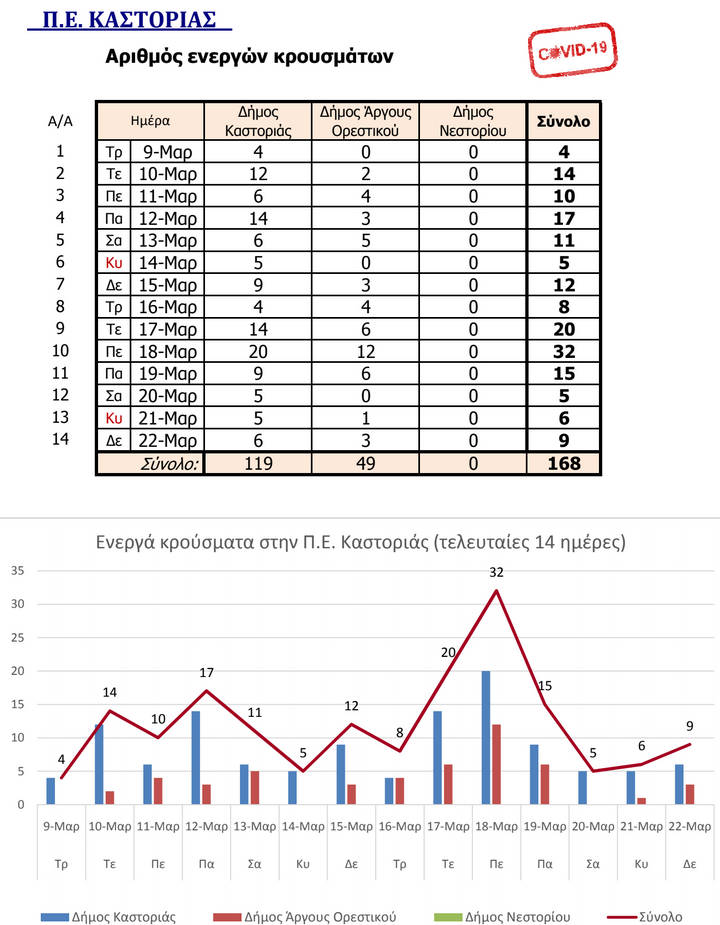 Από ποιους Δήμους της Καστοριάς, της Φλώρινας και των Γρεβενών προέρχονται τα χθεσινά κρούσματα κορονοϊού
