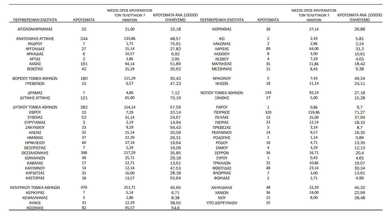Κοζάνη 23/03/2021 Ρεκόρ νέων κρουσμάτων κορονοϊού την Τρίτη 23 Μαρτίου στην Π.Ε. Κοζάνης – Δείτε τη γεωγραφική κατανομή 2 Ο ημερήσιος αριθμός και κρούσματα ανά 100.000 πληθυσμού επιβεβαιωμένων εγχώριων κρουσμάτων COVID-19 ανά περιφερειακή ενότητα στις 23 Μαρτίου 2021: (κλικ στον πίνακα για μεγέθυνση)