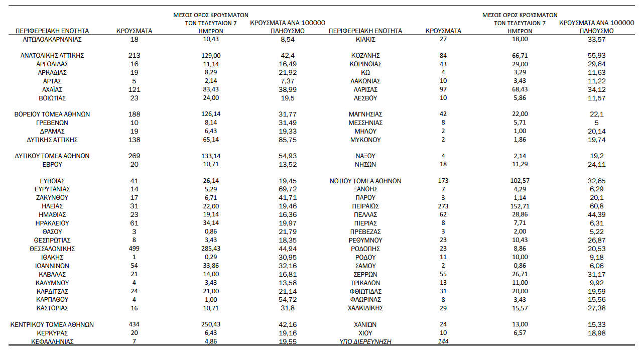 Ο ημερήσιος αριθμός και κρούσματα ανά 100.000 πληθυσμού επιβεβαιωμένων εγχώριων κρουσμάτων COVID-19 ανά περιφερειακή ενότητα στις 31 Μαρτίου 2021: