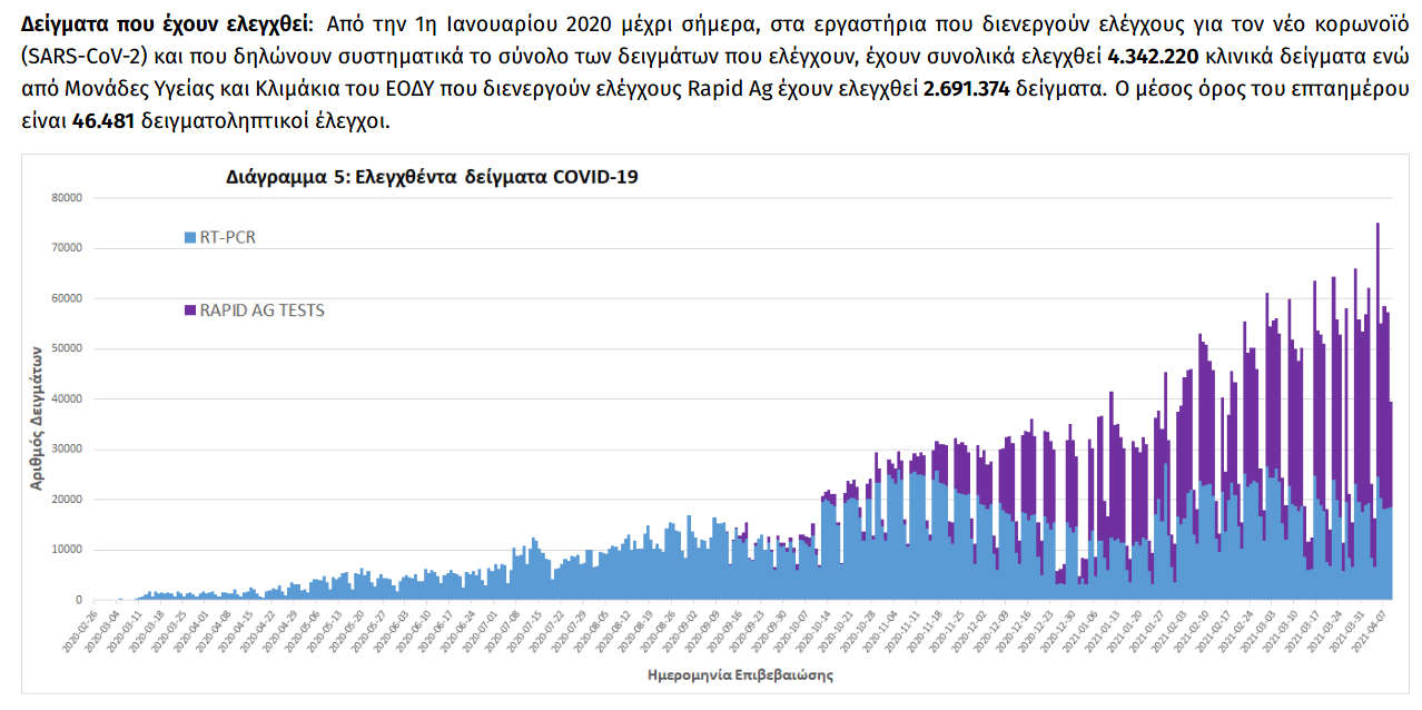 Οι νέοι θάνατοι ασθενών με COVID-19 είναι 75, ενώ από την έναρξη της επιδημίας έχουν καταγραφεί συνολικά 8.833 θάνατοι. Το 95.6% είχε υποκείμενο νόσημα ή/και ηλικία 70 ετών και άνω.