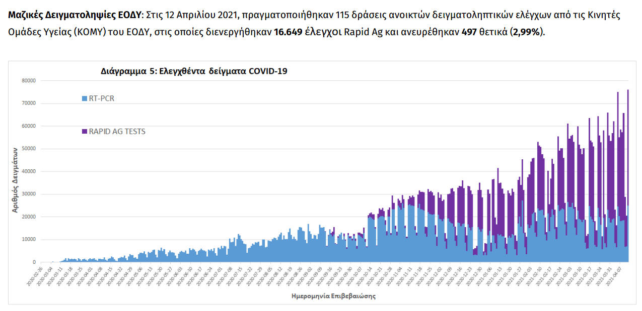 ΕΟΔΥ: Ξεπέρασαν τα 4.000 τα νέα κρούσματα κορονοϊού την Τρίτη 13/4 στη χώρα και τους 800 οι διασωληνωμένοι – 93 νέοι θάνατοι
