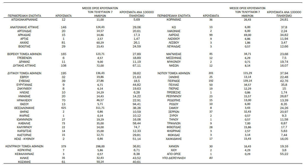 Δυτική Μακεδονία, Κοζάνη 16/04/2021 Δείτε τα νέα κρούσματα κορονοϊού την Παρασκευή 16/4 σε Π.Ε. Κοζάνης και Δυτική Μακεδονία – Η γεωγραφική κατανομή 0 Ο ημερήσιος αριθμός και κρούσματα ανά 100.000 πληθυσμού επιβεβαιωμένων εγχώριων κρουσμάτων COVID-19 ανά περιφερειακή ενότητα στις 16 Απριλίου 2021: (κλικ στον παρακάτω πίνακα για μεγέθυνση)