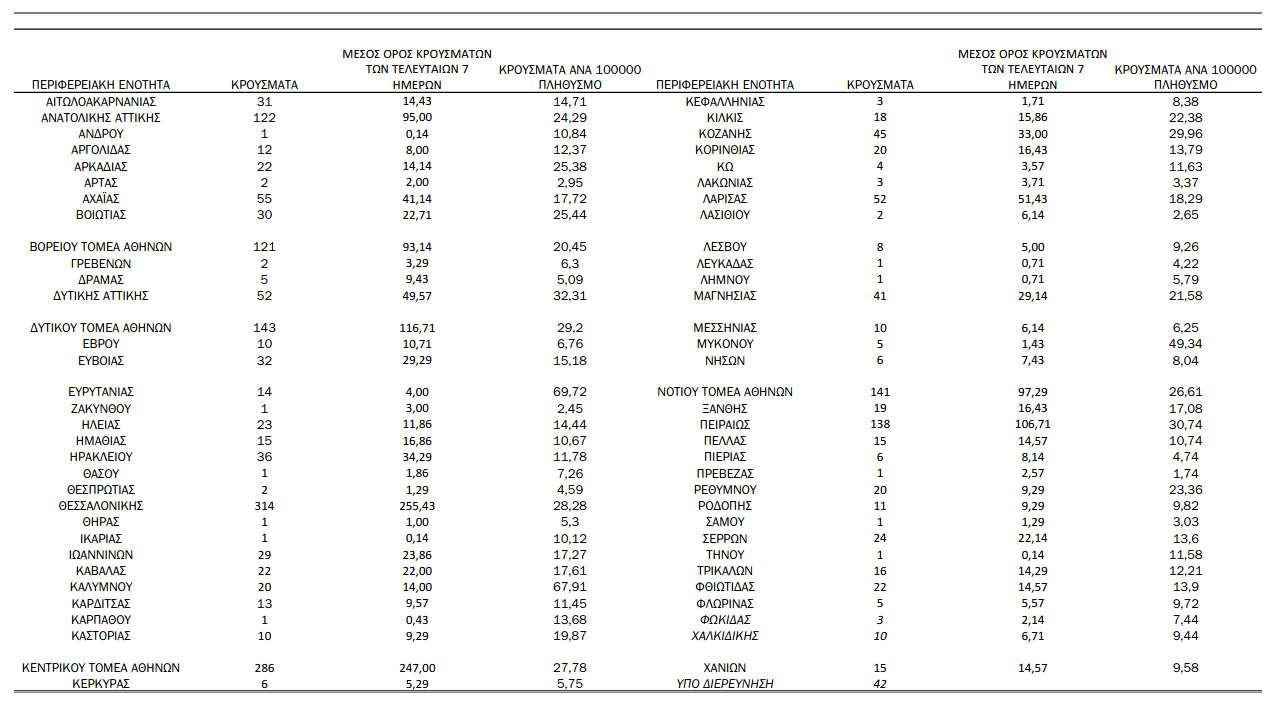 Δυτική Μακεδονία, Κοζάνη 30/04/2021 Πόσα κρούσματα κορονοϊού καταγράφονται σήμερα Μ. Παρασκευή σε Κοζάνη και Δυτική Μακεδονία – Δείτε την κατανομή 0 Ο ημερήσιος αριθμός και κρούσματα ανά 100.000 πληθυσμού επιβεβαιωμένων εγχώριων κρουσμάτων COVID-19 ανά περιφερειακή ενότητα στις 30 Απριλίου 2021: (κλικ στον παρακάτω πίνακα για μεγέθυνση)