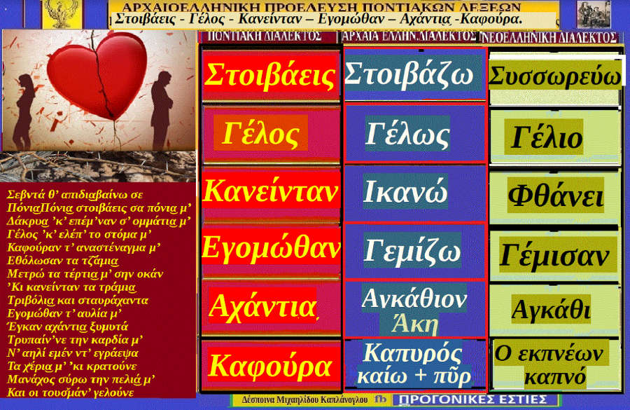 Η επιλογή των λέξεων της Ποντιακής διαλέκτου που εμφανίζονται στον τίτλο της σημερινής δημοσίευσης αντλήθηκαν από στίχους ποντιακού τραγουδιού που μιλά για την αγάπη