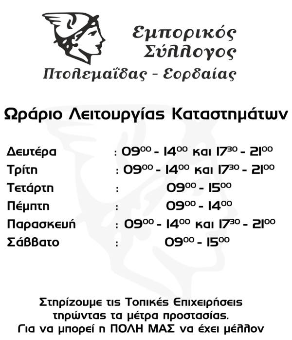 Έπειτα από τα νέα μέτρα της κυβέρνησης ο Εμπορικός Σύλλογος ενημερώνει τα μέλη του καθώς και το καταναλωτικό κοινό ότι επανερχόμαστε στην κανονικότητα.