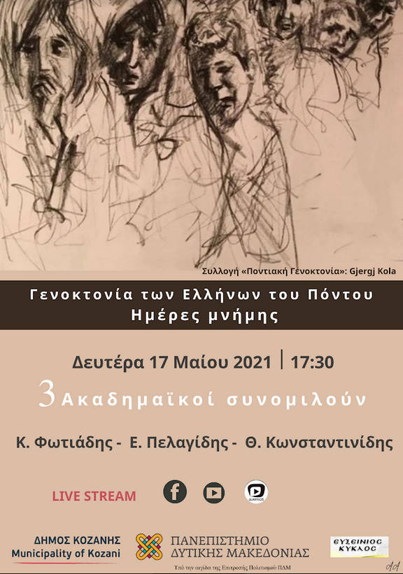Ο Δήμος Κοζάνης και το Πανεπιστήμιο Δυτικής Μακεδονίας διοργανώνουν ως ελάχιστο φόρο τιμής και μνήμης μια σειρά διαδικτυακών εκδηλώσεων, διάρκειας τεσσάρων ημερών, με τίτλο «Γενοκτονία των Ελλήνων του Πόντου | Ημέρες Μνήμης».