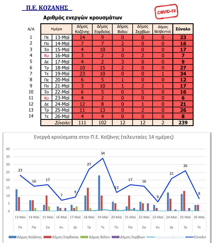 Από ποιους Δήμους της Π.Ε. Κοζάνης προέρχονται τα 8 χθεσινά κρούσματα κορονοϊού