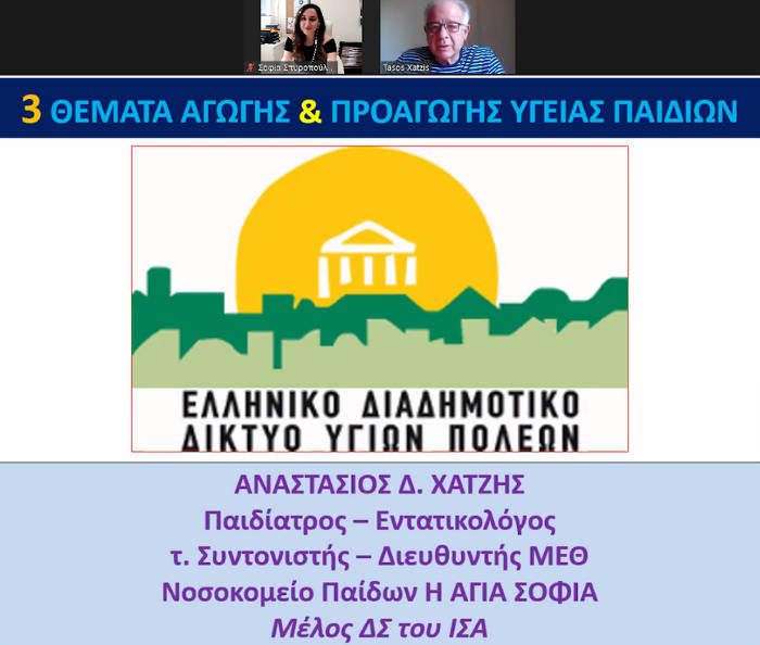 Το Ελληνικό Διαδημοτικό Δίκτυο Υγιών Πόλεων- Προαγωγής Υγείας «ΕΔΔΥΠΠΥ», σε συνεργασία με τους Δήμους: Αμπελοκήπων-Μενεμένης, Αριστοτέλη, Βελβεντού, Βέροιας, Λαμίας, Ξάνθης, Παύλου Μελά, Πύδνας-Κολινδρού, Πυλαίας-Χορτιάτη, Ρήγα Φεραίου, Τεμπών, Φλώρινας, υπό την Aιγίδα του Ιατρικού Συλλόγου Αθηνών, διοργάνωσαν την Τρίτη 1 Ιουνίου, το δεύτερο διαδικτυακό σεμινάριο του προγράμματος «Αγωγή Υγείας για Παιδιά». Οι συμμετέχοντες παρακολούθησαν το πρόγραμμα που πραγματοποιήθηκε με την επιστημονική υποστήριξη του κ. Αναστάσιου Χατζή, Παιδιάτρου-Εντατικολόγου, τ. Συντονιστή-Διευθυντή ΜΕΘ Νοσοκομείου Παίδων Η ΑΓΙΑ ΣΟΦΙΑ, Μέλος ΔΣ Ιατρικού Συλλόγου Αθηνών, μέσω πλατφόρμας Zoom.