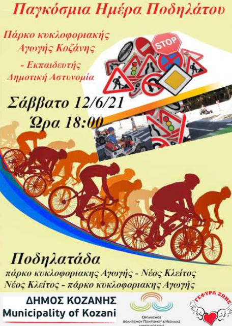 Ο Οργανισμός Αθλητισμού, Πολιτισμού & Νεολαίας του Δήμου Κοζάνης & ο Σύλλογος Εθελοντών Αιμοδοτών Κοζάνης ¨Γέφυρα Ζωής», διοργανώνουν ποδηλασία και ενημέρωση για τους κανόνες οδικής συμπεριφοράς, το Σάββατο 12 Ιουνίου, στις 18:00 στο Πάρκο Κυκλοφοριακής Αγωγής Κοζάνης.