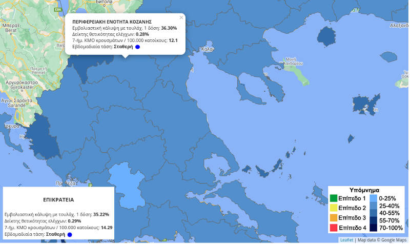 Σύμφωνα με τον υγειονομικό χάρτη της χώρας, η μέχρι στιγμής εμβολιαστική κάλυψη στην Π.Ε. Κοζάνης με τουλάχιστον 1 δόση των εμβολίων φτάνει το 36.30%, επομένως μέχρι στιγμής δεν μπορούν να διεξαχθούν τέτοιου είδους εκδηλώσεις.
