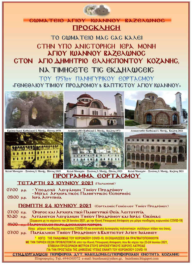 ΠΕΜΠΤΗ 24 ΙΟΥΝΙΟΥ 2021 (Εορτασμός Γενέθλιου Τιμίου Προδρόμου)