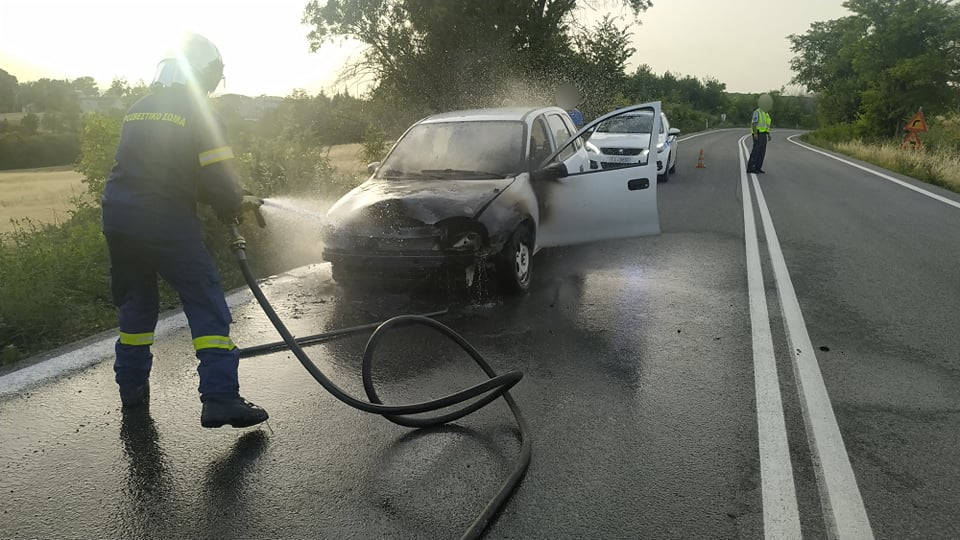 Φωτιά εκδηλώθηκε το απόγευμα της Πέμπτης 24 Ιουνίου 2021 σε ΙΧ αυτοκίνητο που κινούνταν στην Ε.Ο Κοζάνης – Λάρισας έξω από τα Πετρανά Κοζάνης.