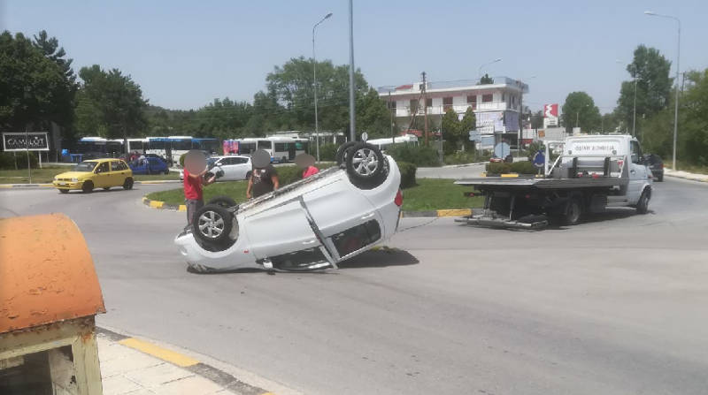 Κοζάνη: Αυτοκίνητο «τούμπαρε» στον κόμβο μετά το Αστυνομικό Μέγαρο – Δείτε φωτογραφία