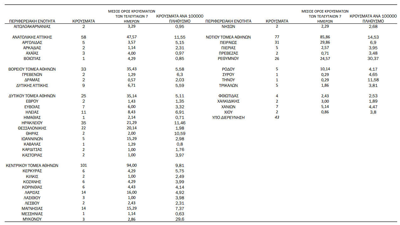 Ελλάδα 04/07/2021 Τα νέα κρούσματα κορονοϊού την Κυριακή 4 Ιουλίου στη χώρα και η γεωγραφική κατανομή 0 Ανακοινώθηκαν από τον ΕΟΔΥ σήμερα, 4 Ιουλίου 2021, 619 νέα κρούσματα κορονοϊού στη χώρα μας, 6 νέοι θάνατοι και 177 διασωληνωμένοι. Η γεωγραφική κατανομή των κρουσμάτων (κλικ στην εικόνα για μεγέθυνση):