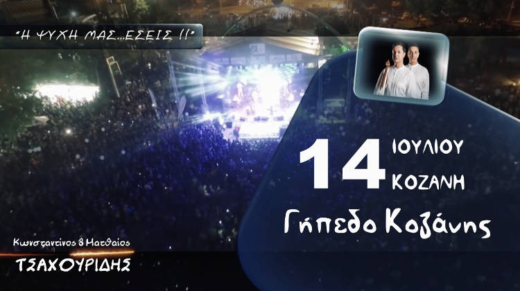 Κοζάνη 13/07/2021 Την Τετάρτη 14 Ιουλίου η συναυλία των αδερφών Τσαχουρίδη στο Δημοτικό Στάδιο Κοζάνης 0 Κωνσταντίνος & Ματθαίος Τσαχουρίδης Η ψυχή μας είστε εσείς…και στην Κοζάνη! Τετάρτη 14 Ιουλίου, στο Δημοτικό Στάδιο Κοζάνης, στις 9.30 το βράδυ.