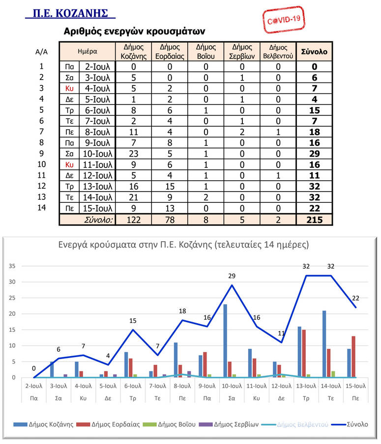 Δείτε από ποιους Δήμους της Π.Ε. Κοζάνης προέρχονται τα κρούσματα κορονοϊού των τελευταίων ημερών