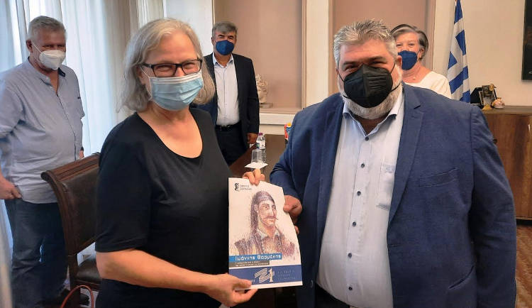 Στο τέλος της συνάντησης αντηλλάγησαν αναμνηστικά δώρα μεταξύ του Δημάρχου και της Πρέσβεως.