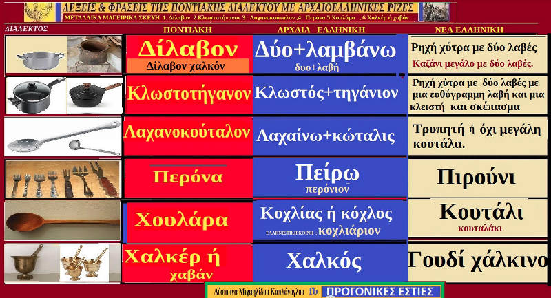 Έχουν ακουστεί πολλά για τις Ποντιακές γεύσεις και την Ποντιακή κουζίνα ποια όμως ήταν τα σκευή που χρησιμοποιούσαν για να παρασκευάσουν τα υπέροχα αυτά εδέσματα. Που άλλα ήταν απλά στην παρασκευή τους και άλλα ελαφρώς πολύπλοκα,τι σκευή χρησιμοποιούσαν. Ποια από αυτά τα σκευή άντεξαν στον χρόνο με την έννοια του ονόματος να έχει την αρχαιοελληνική ρίζα.