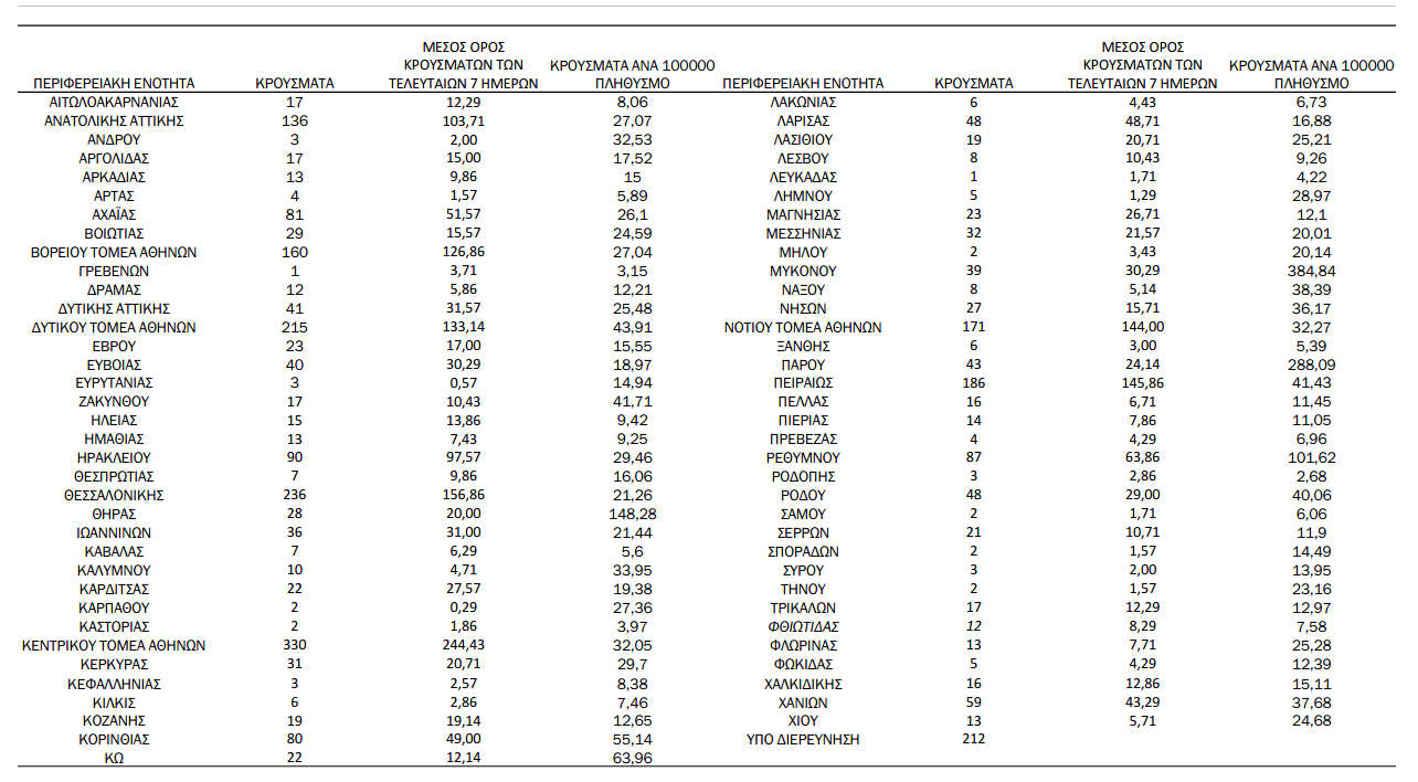 Ελλάδα, Κοζάνη 21/07/2021 Δείτε τα νέα κρούσματα κορονοϊού της Τετάρτης 21/7 στη χώρα – Πόσα καταγράφονται στην Π.Ε. Κοζάνης 0 Ανακοινώθηκαν από τον ΕΟΔΥ σήμερα, 21 Ιουλίου 2021, 2.972 νέα κρούσματα κορονοϊού στη χώρα μας, 3 νέοι θάνατοι και 125 διασωληνωμένοι. Η γεωγραφική κατανομή των κρουσμάτων (κλικ στην εικόνα για μεγέθυνση):