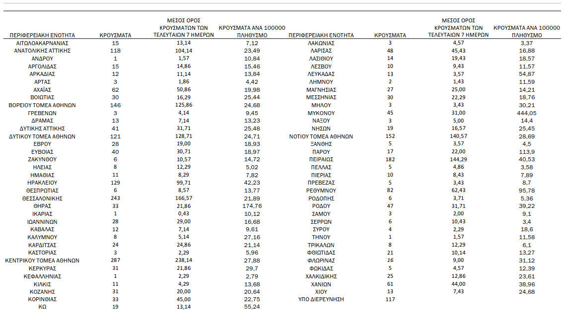 Ελλάδα, Κοζάνη 22/07/2021 Πέμπτη 22 Ιουλίου: Τα νέα κρούσματα κορονοϊού στη χώρα – Πόσα κρούσματα καταγράφονται στην Π.Ε. Κοζάνης 0 Ανακοινώθηκαν από τον ΕΟΔΥ σήμερα, 22 Ιουλίου 2021, 2.604 νέα κρούσματα κορονοϊού στη χώρα μας, 5 νέοι θάνατοι και 126 διασωληνωμένοι. Η γεωγραφική κατανομή των κρουσμάτων (κλικ στην εικόνα για μεγέθυνση):