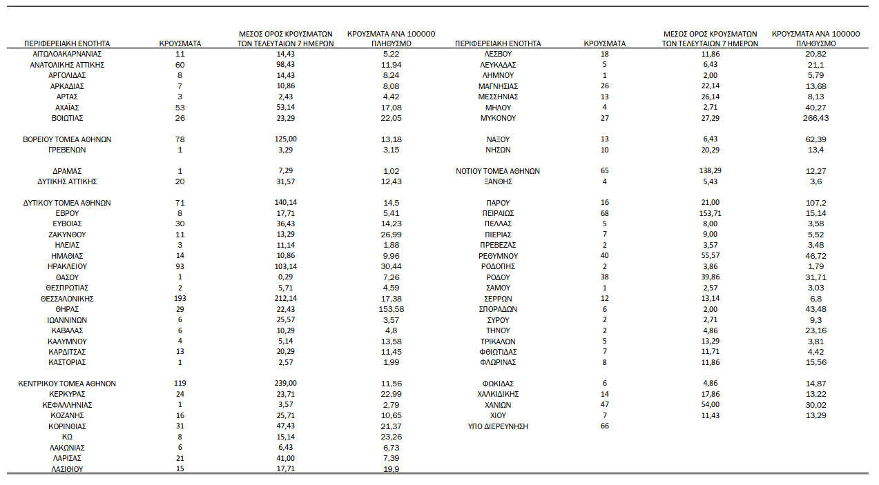 Ελλάδα, Κοζάνη 25/07/2021 Δείτε τα νέα κρούσματα κορονοϊού την Κυριακή 25/7 στη χώρα – Πόσα κρούσματα καταγράφονται στην Π.Ε. Κοζάνης 0 Ανακοινώθηκαν από τον ΕΟΔΥ σήμερα, 25 Ιουλίου 2021, 1.553 νέα κρούσματα κορονοϊού στη χώρα μας, 8 νέοι θάνατοι και 134 διασωληνωμένοι. Η γεωγραφική κατανομή των κρουσμάτων (κλικ στην εικόνα για μεγέθυνση):