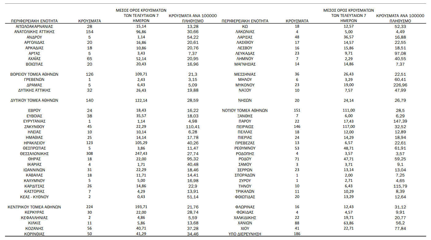 Ελλάδα, Κοζάνη 28/07/2021 Πόσα νέα κρούσματα κορονοϊού καταγράφονται σήμερα Τετάρτη 28/7 στην Π.Ε. Κοζάνης – Η ανακοίνωση του ΕΟΔΥ 0 Ανακοινώθηκαν από τον ΕΟΔΥ σήμερα, 28 Ιουλίου 2021, 2.874 νέα κρούσματα κορονοϊού στη χώρα μας, 15 νέοι θάνατοι και 144 διασωληνωμένοι. Η γεωγραφική κατανομή των κρουσμάτων (κλικ στην εικόνα για μεγέθυνση):