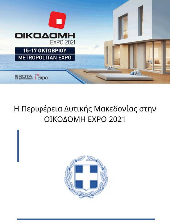 Η Περιφέρεια Δυτικής Μακεδονίας στηρίζει ενεργά τον κλάδο των κατασκευών, συμμετέχοντας στην έκθεση ΟΙΚΟΔΟΜΗ EXPO 2021, η οποία διοργανώνεται 15-17 Οκτωβρίου 2021 στο εκθεσιακό κέντρο Metropolitan Expo.