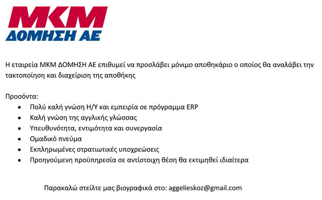 Θέση εργασίας από εταιρία στην Κοζάνη: